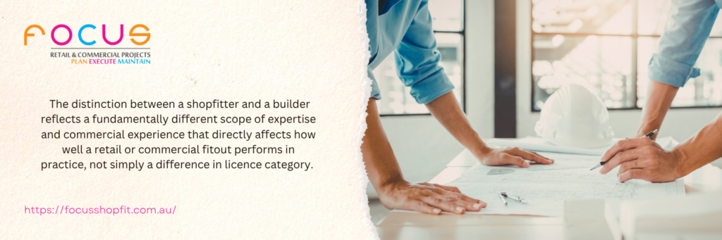 The distinction between a shopfitter and a builder reflects a fundamentally different scope of expertise and commercial experience that directly affects how well a retail or commercial fitout performs in practice, not simply a difference in licence category.